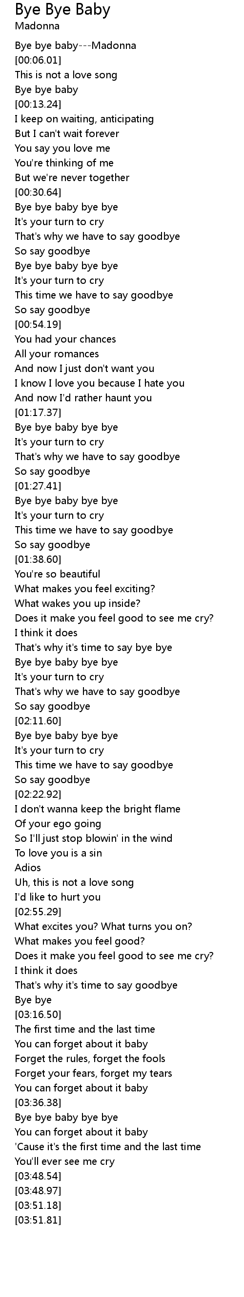Bye bye baby lyrics. Bye bye baby baby goodbye. Cause there aint any future in it. I got to go oh and Im never comin back now Bye bye baby Ill be sure to write Got to roll oh is what Ive got to do Bye bye baby now Im over you.
